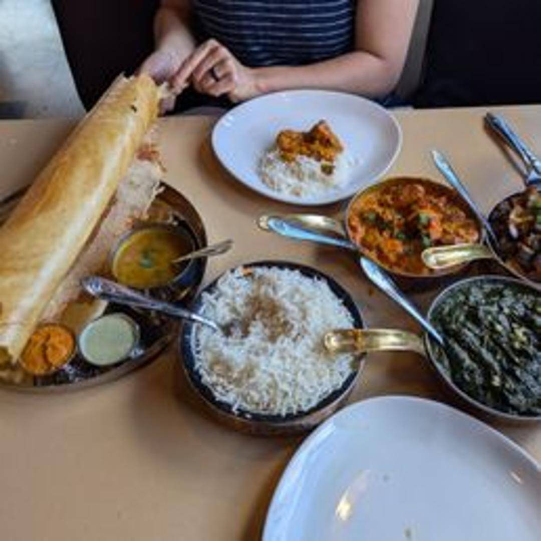 Thin, crispy crepe made from fermented rice and lentil batter. Served with sambar and chutney. A South Indian staple.