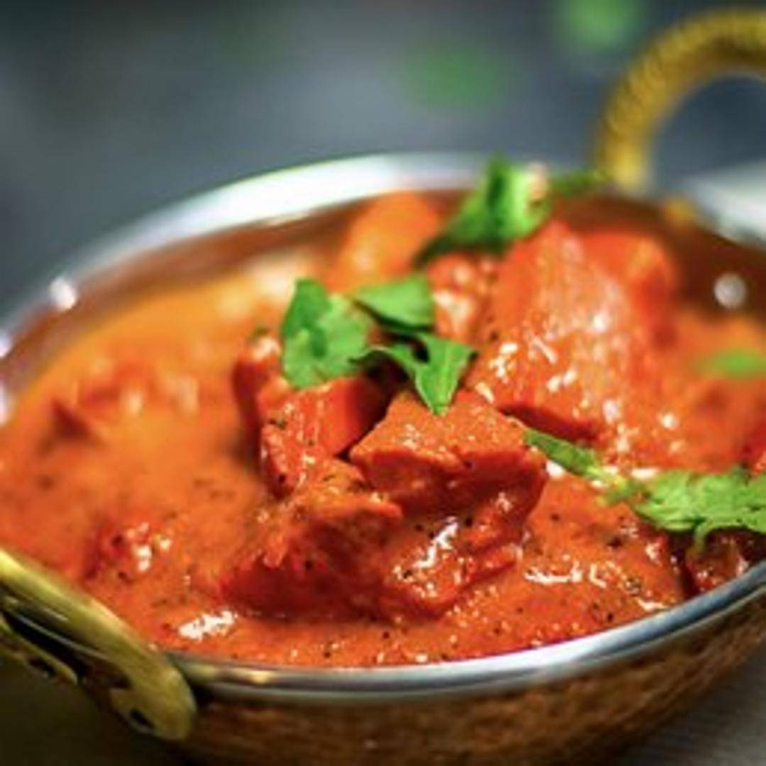Chicken tikka pieces simmered in a creamy tomato-based sauce with onions, peppers, and spices. A popular and flavorful curry.