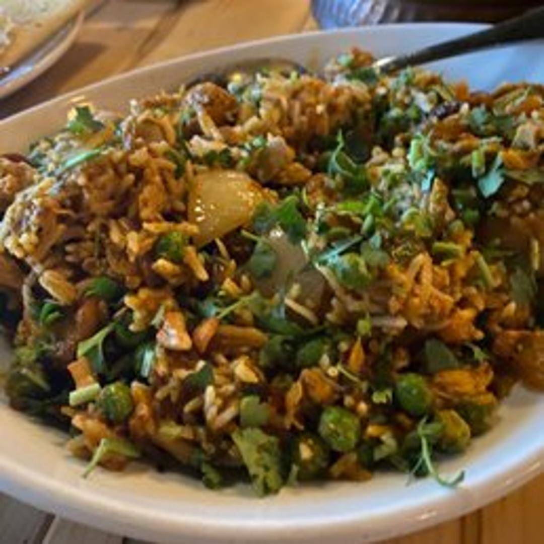 Fragrant basmati rice layered with tender pieces of marinated chicken, slow-cooked with aromatic spices, saffron, and herbs. Served with raita.