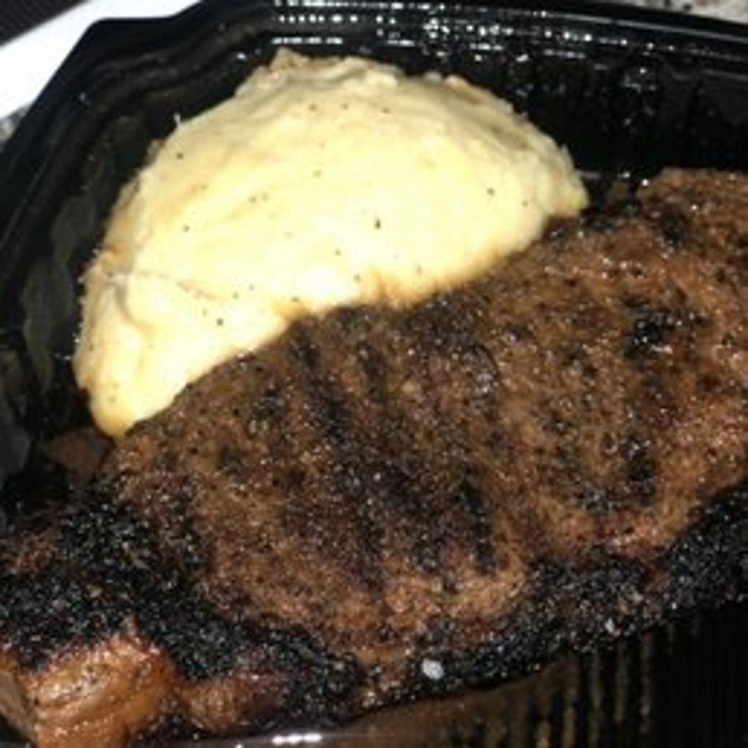 A prime New York Strip steak, known for its firm texture and intense, beefy flavor. Grilled to a perfect char on the exterior while remaining juicy and tender within, offering a classic steakhouse favorite.