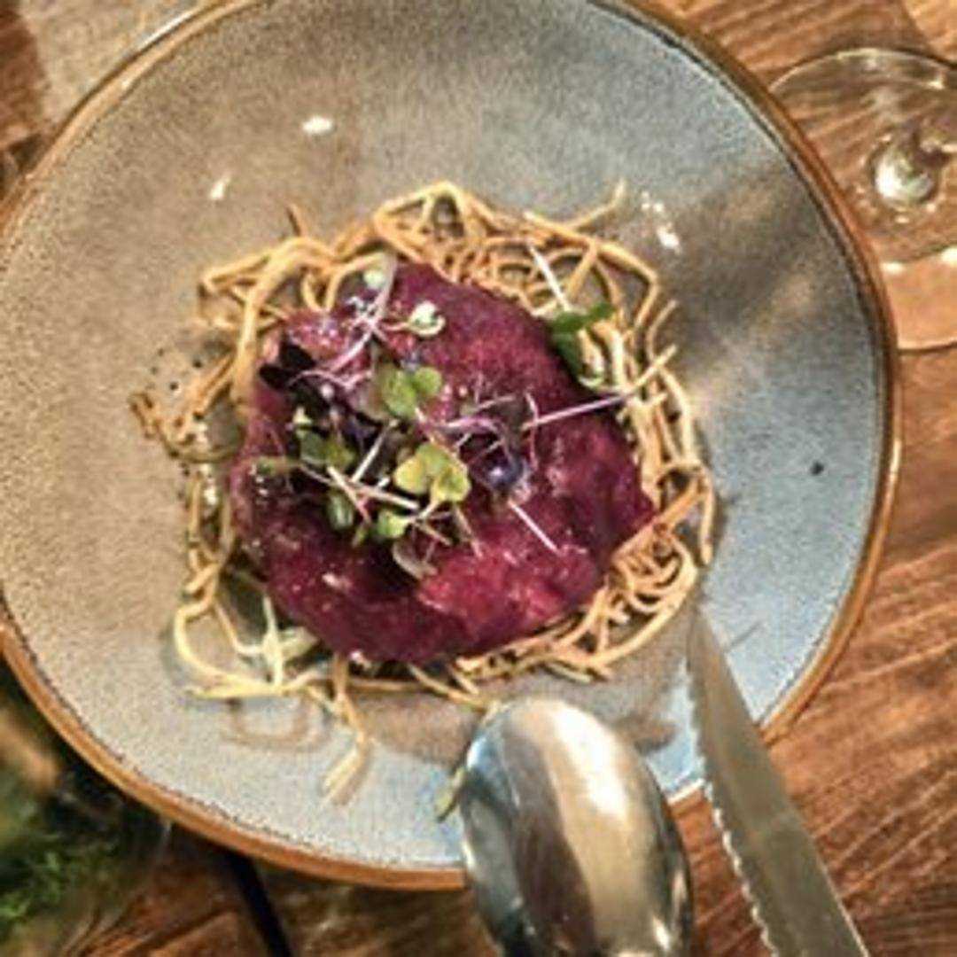 Finely chopped raw elk seasoned with traditional tartare ingredients, served with crostini.