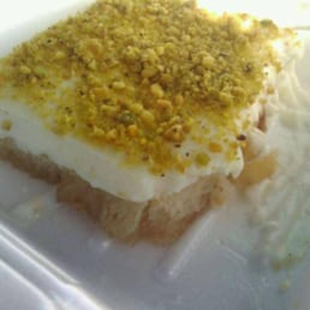 A creamy, clotted cream dessert flavored with rose water or orange blossom. Often served with honey or fruit syrup.