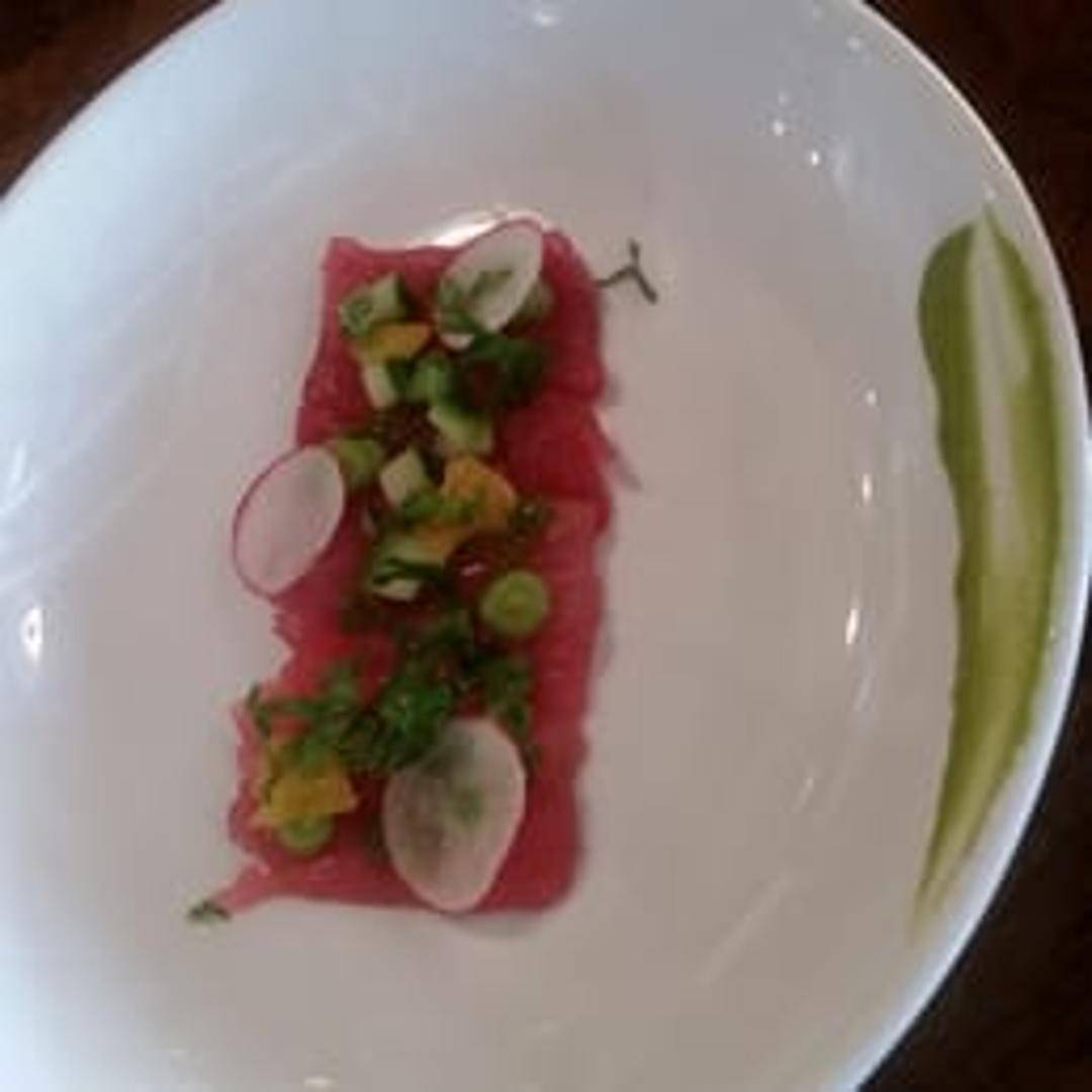 Thinly sliced, raw tuna, delicately seasoned and dressed. Expect vibrant flavors and textures, often incorporating citrus, herbs, and chili for a balanced and refreshing experience. May include elements like pickled vegetables or a soy-based sauce.