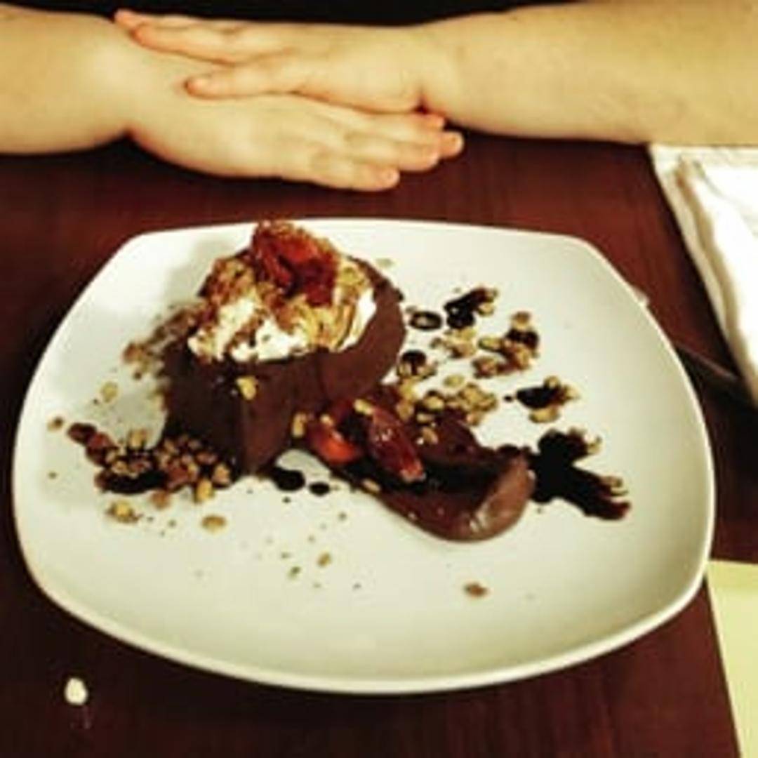 A rich and decadent flourless chocolate cake, made with high-quality dark chocolate. Features a dense, moist texture and intense chocolate flavor. May be served with a dusting of cocoa powder, fresh berries, or a scoop of vanilla ice cream. Gluten-free.