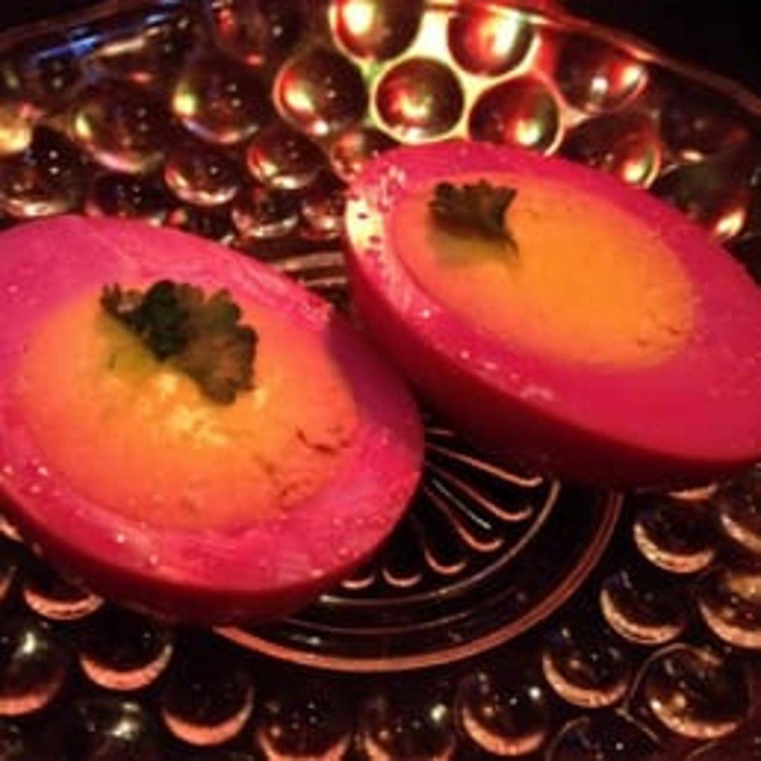 Hard-boiled eggs preserved in a brine of vinegar, spices, and seasonings. Flavor profiles vary, but expect a tangy, slightly salty, and often subtly sweet taste.