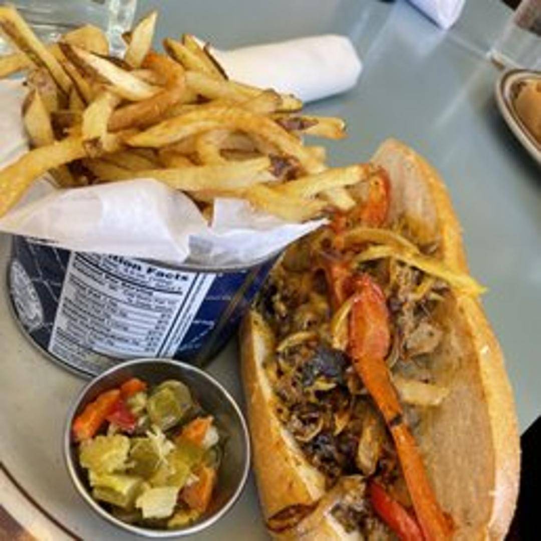 Thinly sliced ribeye steak grilled and piled high on a hoagie roll with melted provolone cheese, and your choice of onions and peppers.