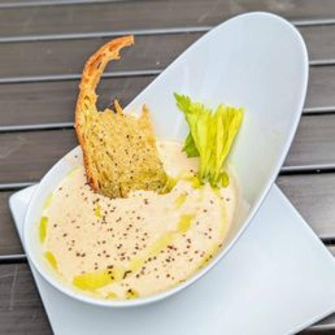 A luxuriously creamy and intensely flavorful soup, made with the delicate and sweet meat of crab. This rich bisque is typically thickened with cream and often enhanced with a touch of tomato, sherry, or brandy, which deepens its complex profile. It offers a smooth, velvety texture and is garnished with fresh herbs or a swirl of crème fraîche, highlighting the essence of the seafood.
