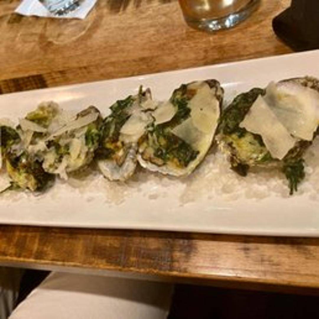 Indulge in a classic with our decadent Oyster Rockefeller. Freshly shucked oysters are baked to perfection under a rich, savory topping of finely chopped spinach, aromatic herbs, and a touch of Pernod, all crowned with a crisp, golden breadcrumb crust. This creamy, flavorful appetizer is a luxurious tribute to a timeless culinary tradition, offering a delightful interplay of textures and tastes.