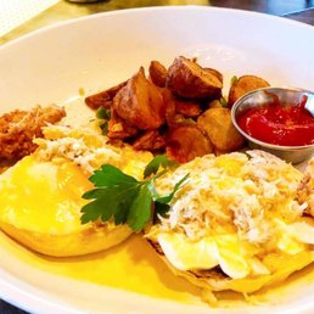 A luxurious take on the brunch classic, featuring succulent jumbo shrimp and sweet lump crab meat delicately placed atop toasted English muffins, crowned with perfectly poached eggs and draped in a rich, velvety hollandaise sauce.