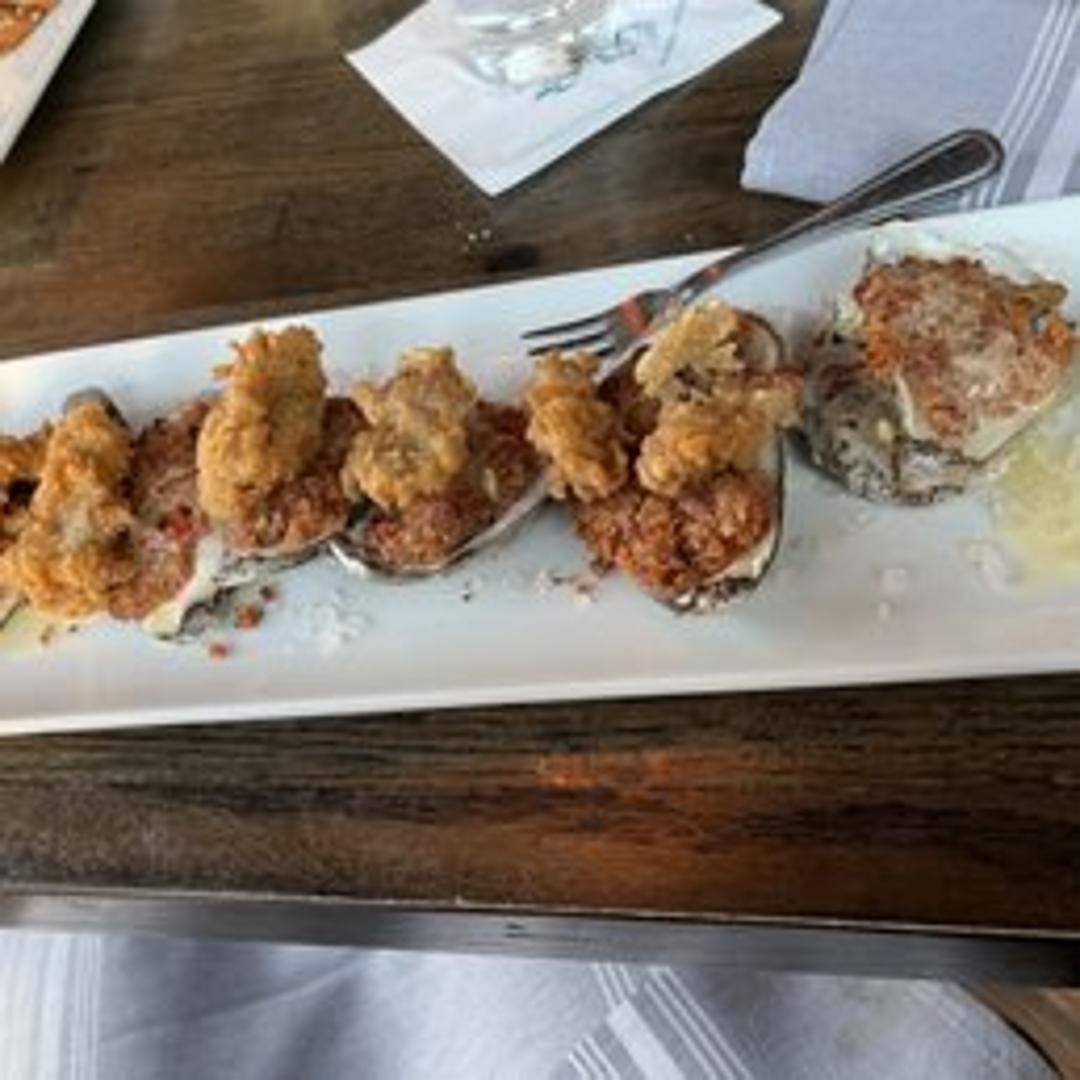 Plump, briny oysters lightly breaded and fried to a golden crisp, delivering a delightful crunch with every bite. Inspired by the classic Oysters Casino, these are enhanced with savory notes of bacon, garlic, and a hint of pepper, offering a rich and indulgent appetizer.