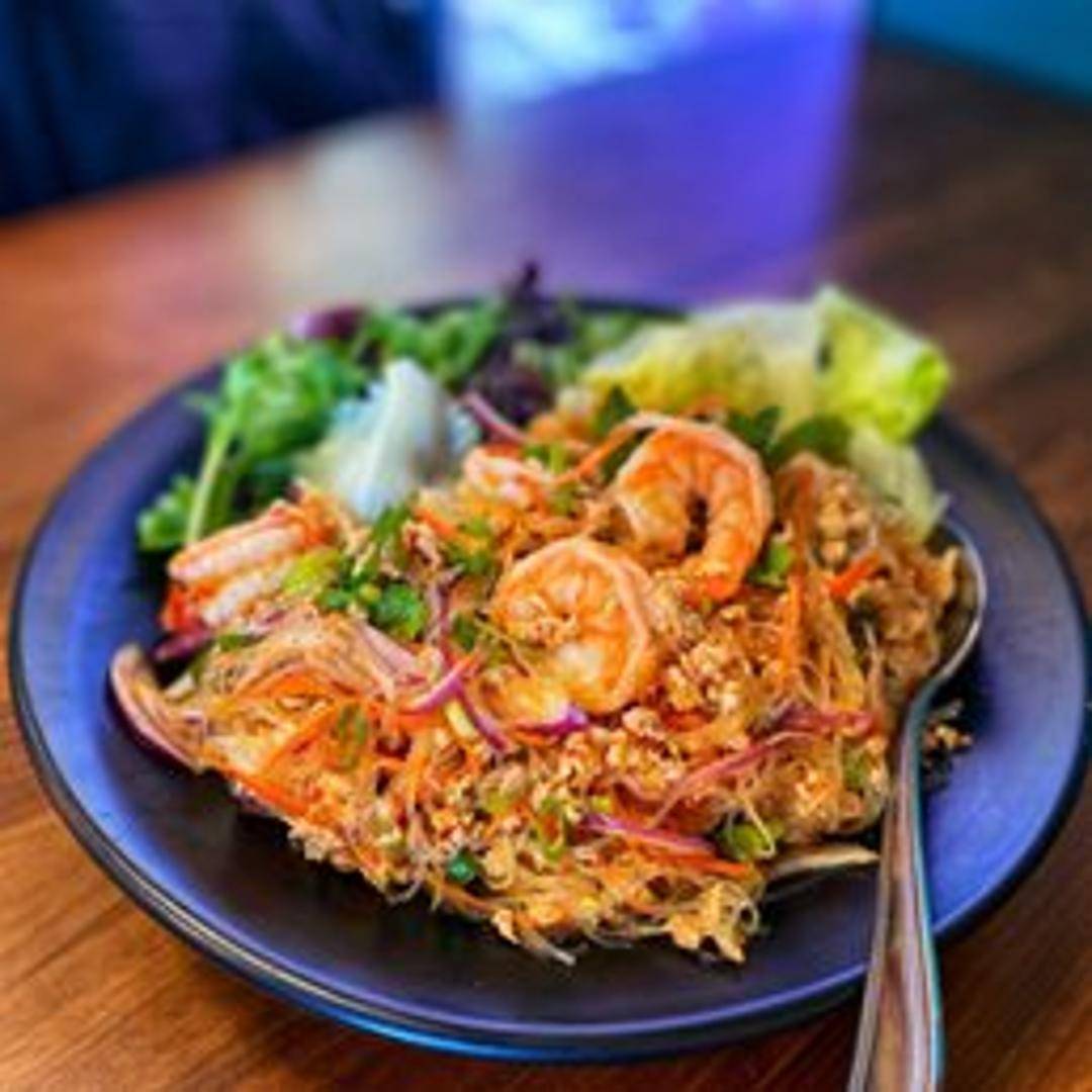 Refreshing and flavorful noodle salad featuring rice noodles tossed with crisp vegetables, peanuts, and a tangy Thai dressing. May contain protein.