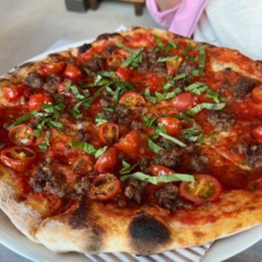 A delicious plant-based pizza featuring vegan meatballs, marinara sauce, vegan cheese, and your choice of toppings. A savory and satisfying meat-free option.