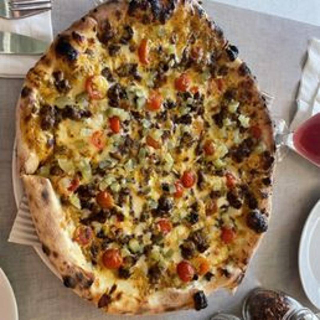 A pizza for the vegetarian cheeseburger lover! We start with our signature pizza dough and sauce, then load it up with melted cheese, vegetarian burger crumbles, crisp lettuce, fresh tomatoes, tangy pickles, and a generous drizzle of our special burger sauce. All the flavors of a cheeseburger, on a pizza!