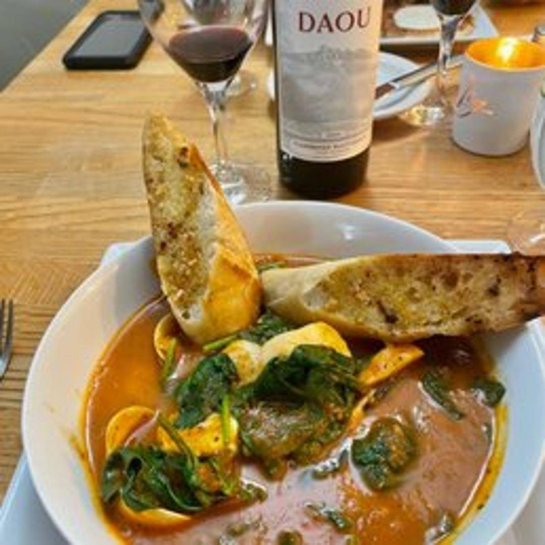 A hearty seafood stew featuring a medley of fresh fish, shellfish, and vegetables in a rich tomato broth.