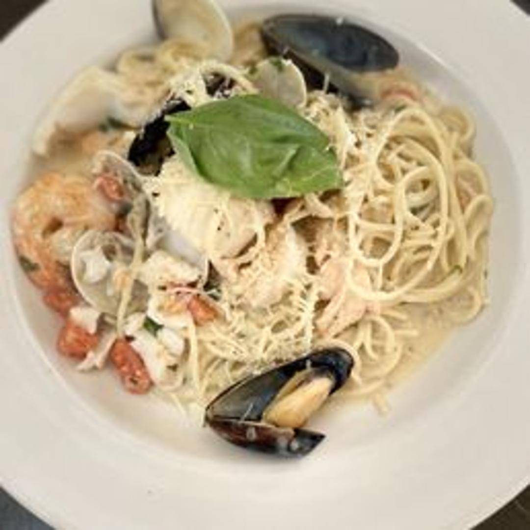 Pasta tossed with a variety of fresh seafood in a creamy Alfredo or marinara sauce.