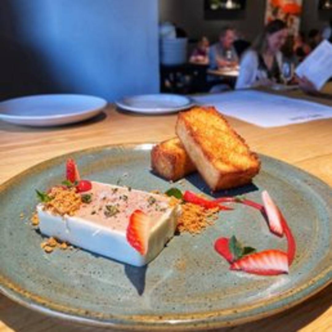 Smooth and rich foie gras parfait, served with toasted bread, fruit compote, and a drizzle of honey.