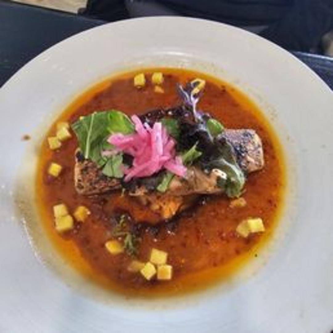 Pan-seared salmon fillet, blackened with Cajun spices, served with your choice of sides.