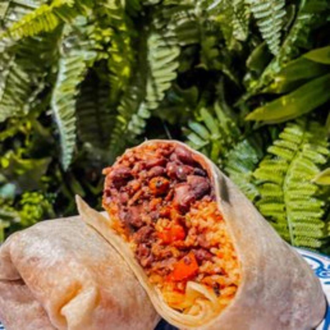 Grilled seitan asada, rice, beans, pico de gallo, guacamole, and vegan cheese wrapped in a warm flour tortilla.