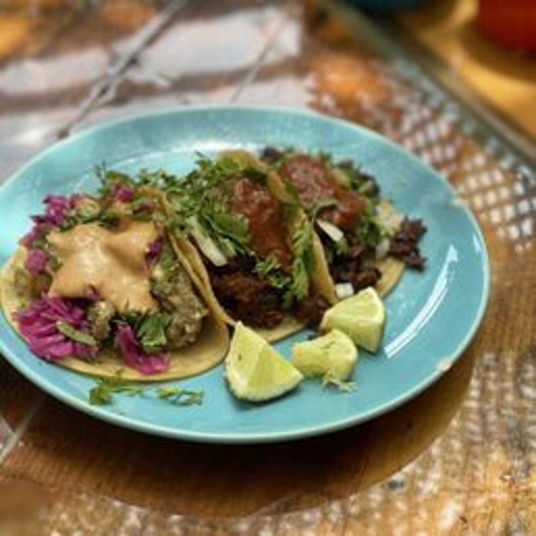 Marinated jackfruit, pineapple salsa, cilantro, and onion served on a warm corn tortilla.
