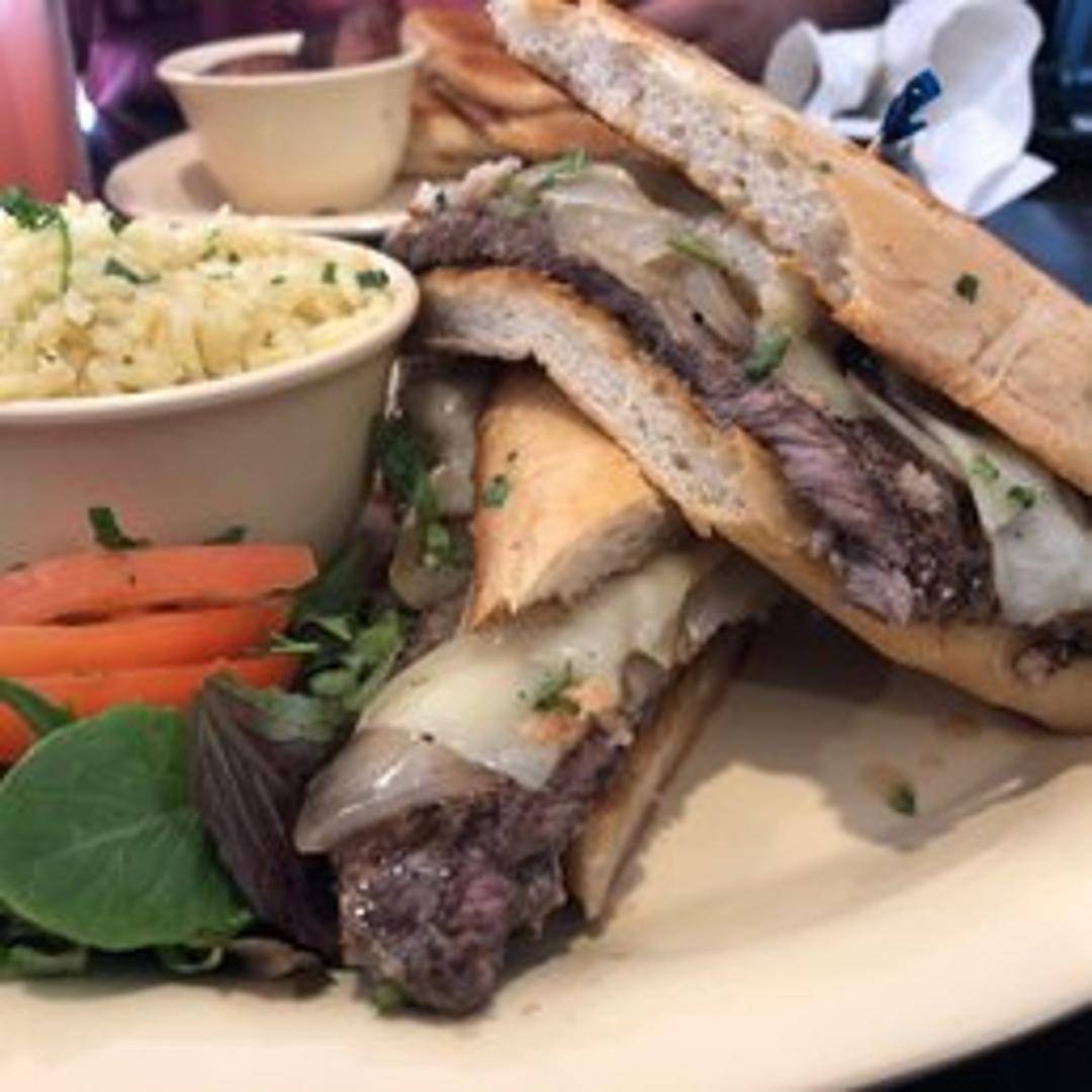 A flavorful Cuban steak sandwich featuring thinly sliced, marinated steak grilled to perfection. Served on crusty Cuban bread with onions, lettuce, tomatoes, and sometimes potato sticks and a garlic sauce.