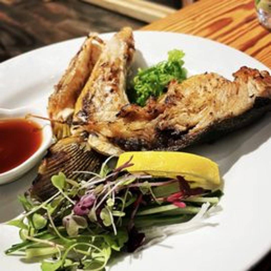 Fresh, thinly sliced Hamachi (yellowtail) sashimi. Served with ponzu sauce, grated ginger, and scallions.