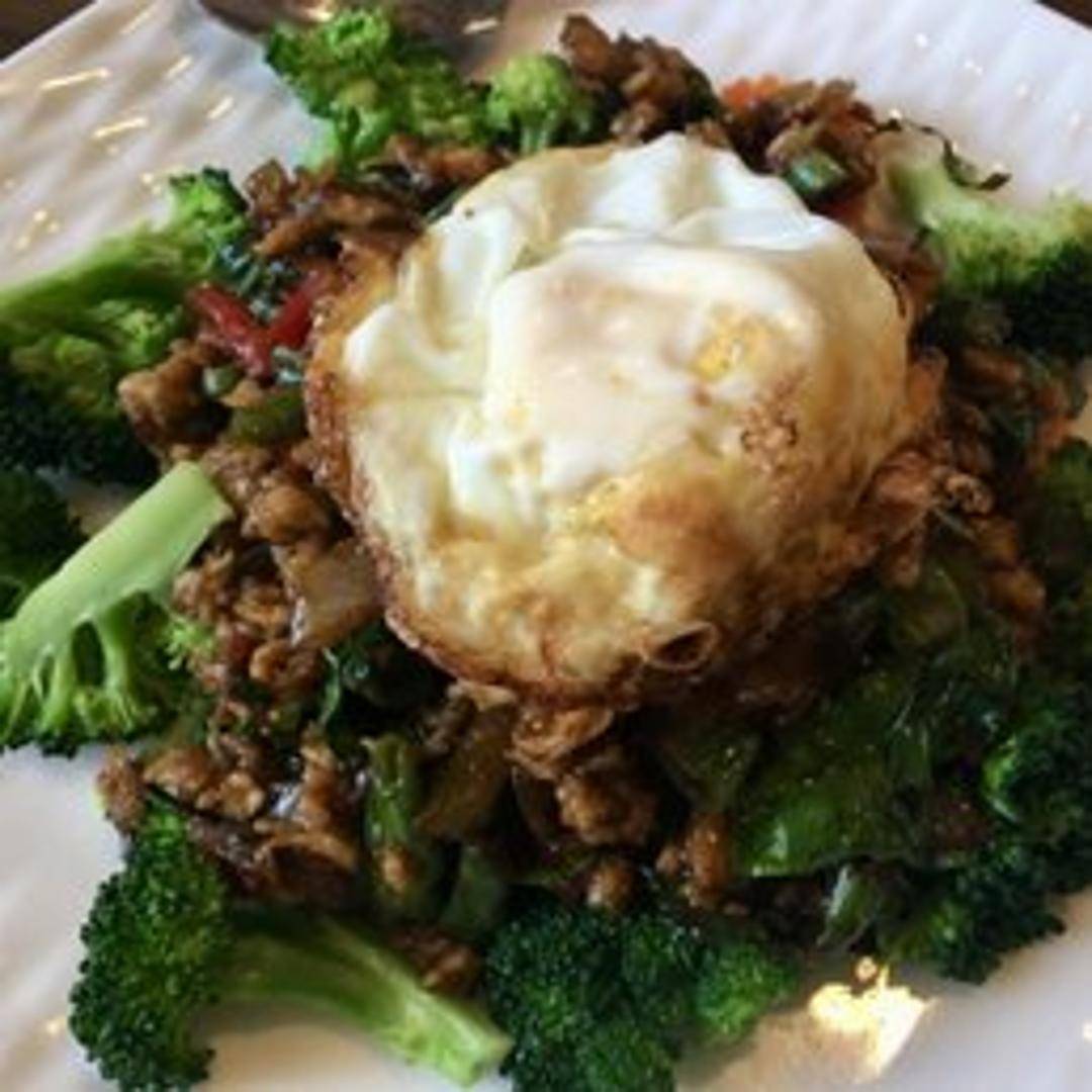 A unique and aromatic Thai dish that celebrates the distinct flavor of fresh basil. This savory preparation often features intensely stir-fried or crispy basil leaves, combined with your choice of protein or vegetables, and seasoned with a minimal amount of sauce to emphasize the natural herb essence. It offers a fragrant, savory, and less saucy alternative to traditional stir-fries, allowing the basil to truly shine.