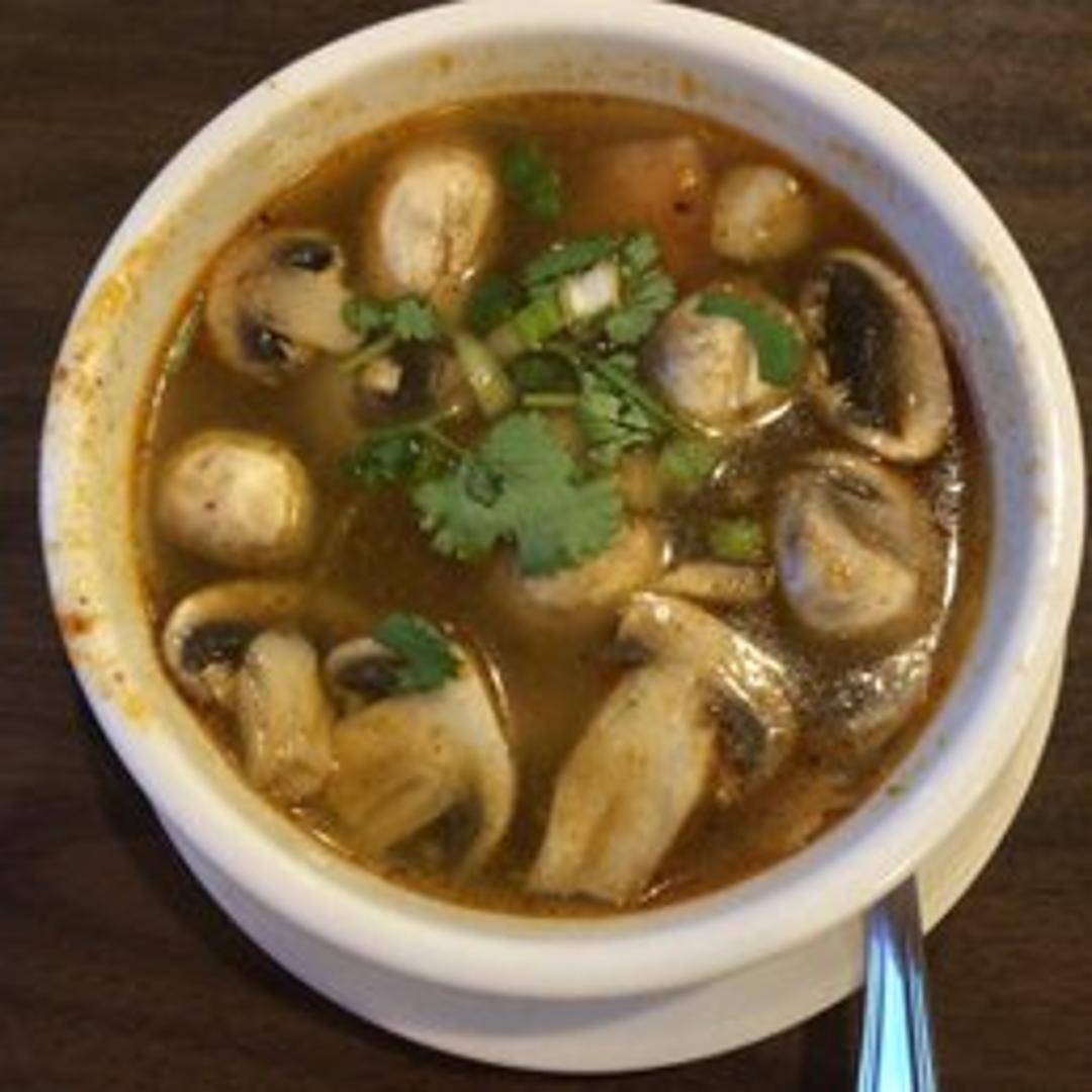 A quintessential Thai hot and sour soup, Tom Yum is celebrated for its distinctive bold flavors. This aromatic broth is infused with traditional Thai herbs like lemongrass, galangal, and kaffir lime leaves, along with chili paste for a spicy kick. Typically prepared with fresh mushrooms and your choice of protein (commonly shrimp or chicken), it offers a vibrant and refreshing taste experience that is both invigorating and deeply satisfying.