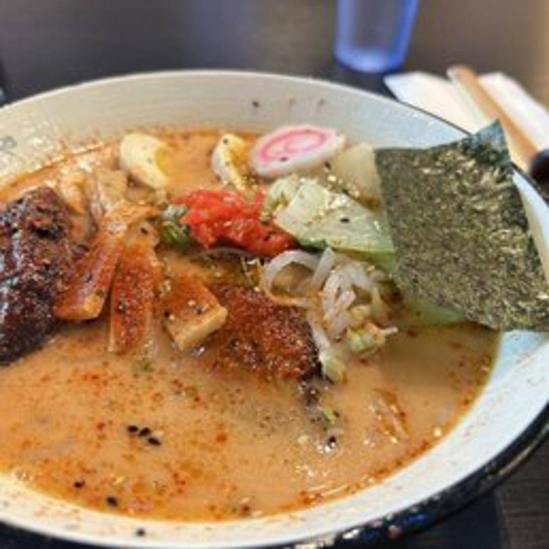 Creamy and rich tonkotsu broth with a fiery kick of spice. Topped with chashu pork, vegetables, and a spicy chili paste.