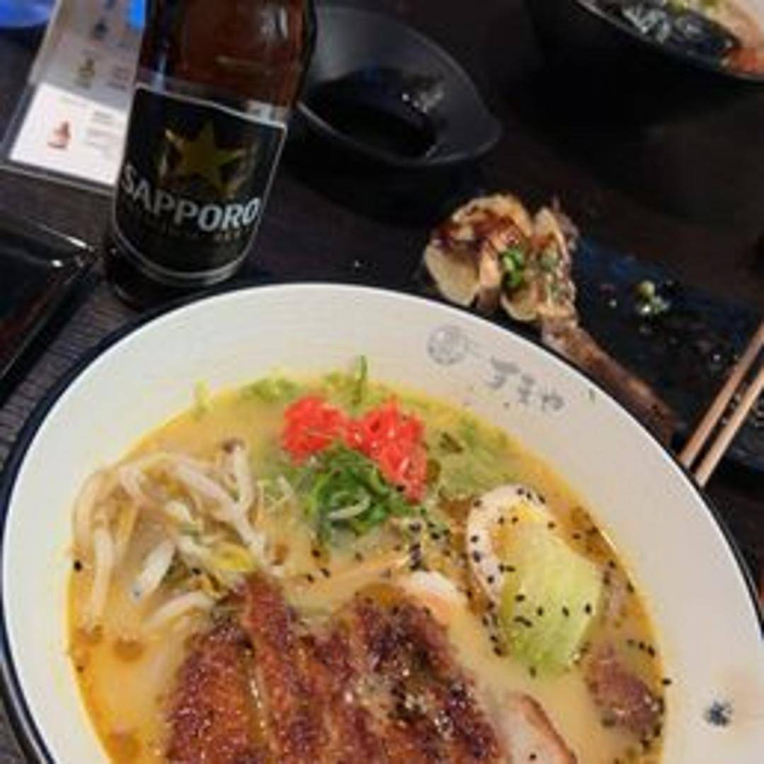 A fusion of flavors! Creamy tonkotsu broth infused with Japanese curry spices. Topped with chashu pork and vegetables.