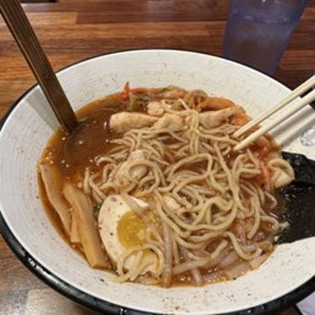 A spicy and flavorful ramen featuring the iconic Korean kimchi. The ramen broth is infused with the fermented cabbage’s distinctive tang and heat. Topped with various complements.
