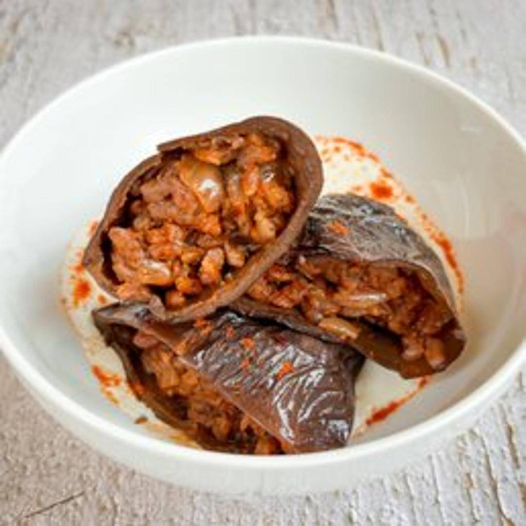 Tender eggplant stuffed with a flavorful mixture of rice, herbs, and spices, simmered in a light tomato sauce.