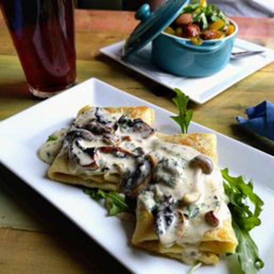 Small, cheese-filled pancakes similar to blintzes.