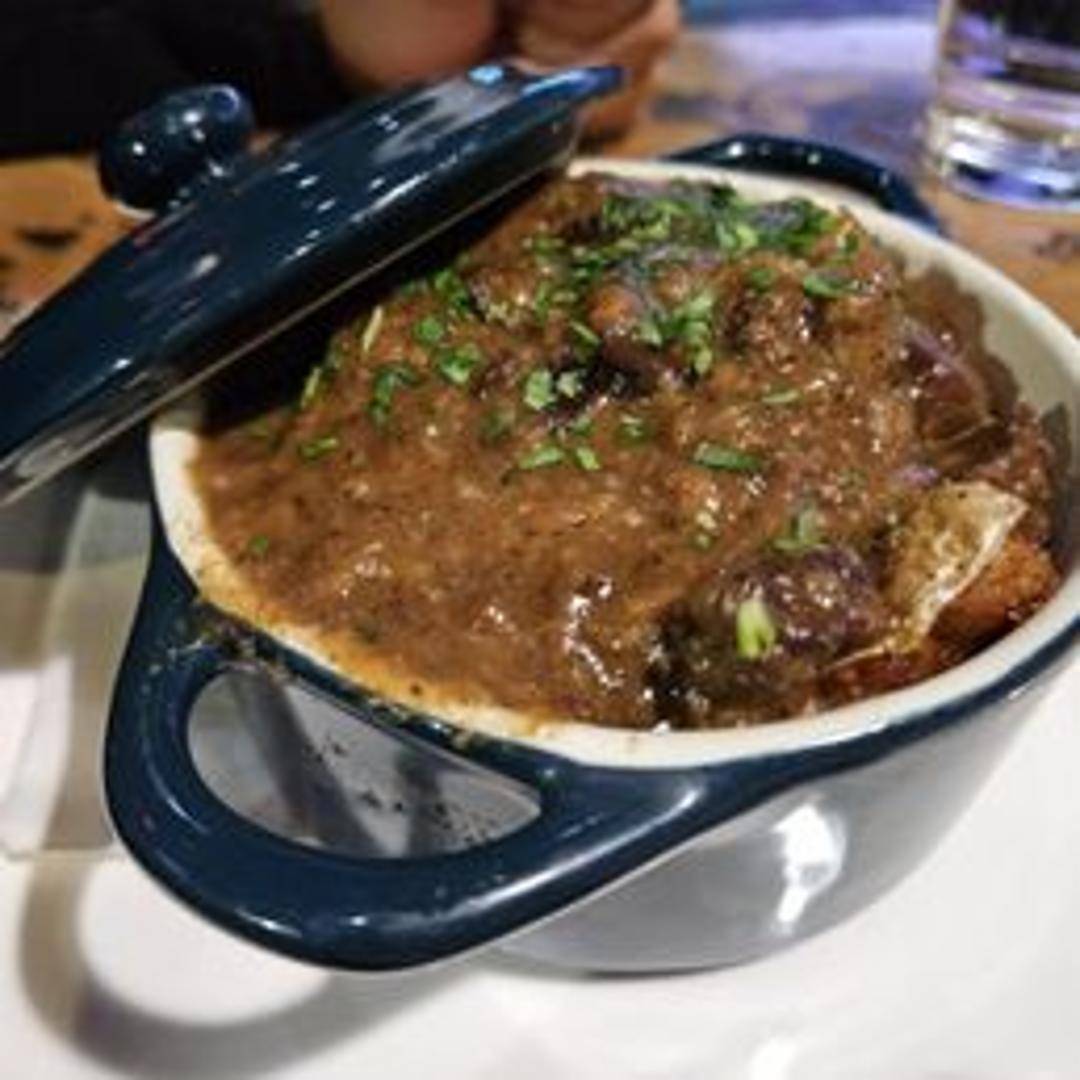 A hearty and flavorful stew featuring tender bison meat, slow-cooked with vegetables and herbs in a rich broth.
