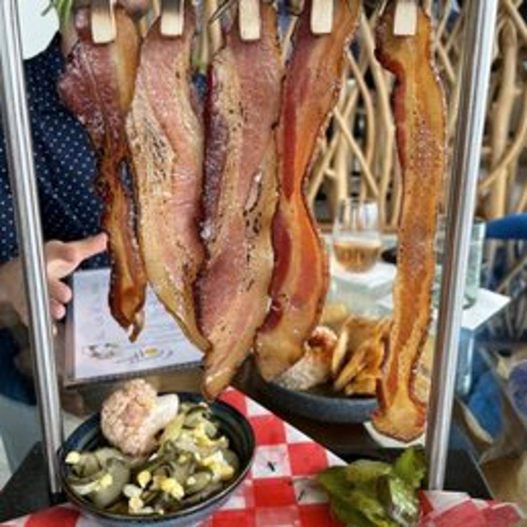 Experience our signature Clothesline Bacon, a culinary masterpiece designed to tantalize both the eyes and the palate. This dish features generously thick-cut bacon, expertly slow-cooked to achieve the perfect balance of crispy edges and tender, melt-in-your-mouth richness. Each strip is then glazed with a subtly sweet and savory reduction, creating an irresistible caramelized finish. Presented artfully hanging from a miniature clothesline, this visually stunning and decadently delicious appetizer offers a unique and memorable dining experience, perfect for sharing or savoring solo.