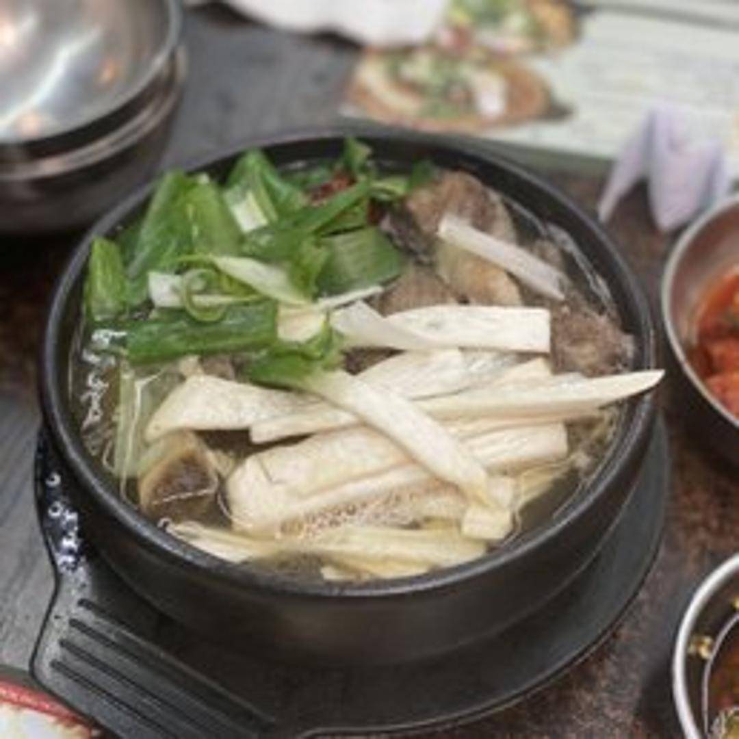 A rich and savory Korean soup made with oxtail. The oxtail is slow-cooked until incredibly tender, imparting a deep, beefy flavor to the broth. Usually includes vegetables like radish and green onions. A comforting and restorative dish.
