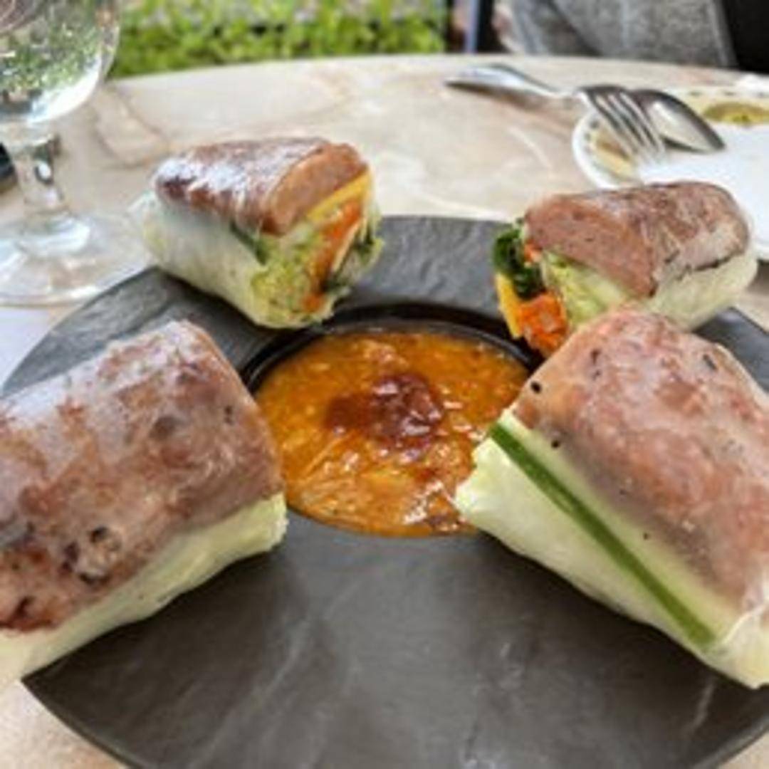 A popular Vietnamese grilled pork sausage that is both flavorful and wonderfully aromatic. Made from finely ground pork, seasoned with a blend of sugar, fish sauce, garlic, and other spices, it's typically formed into small patties or skewers and grilled until beautifully caramelized and slightly charred. Served often with fresh herbs, lettuce wraps, rice paper, and a special savory-sweet dipping sauce, it offers a delightful smoky and savory taste.