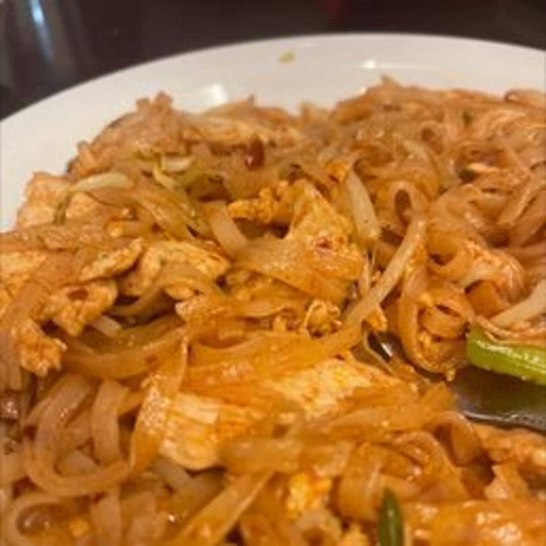 Stir-fried rice noodles with your choice of protein (typically chicken, tofu, shrimp, or a combination), eggs, bean sprouts, green onions, and peanuts in a sweet and savory Pad Thai sauce.