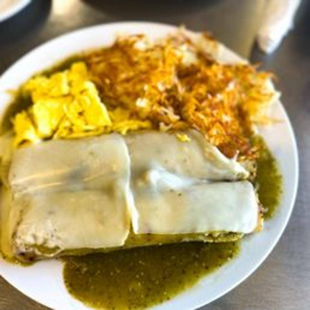 Tender, slow-cooked pork carnitas simmered in a vibrant and flavorful chili verde sauce, hand-rolled in corn tortillas, and baked to perfection. Topped with melted cheese, sour cream, and fresh cilantro. Served with rice and beans.