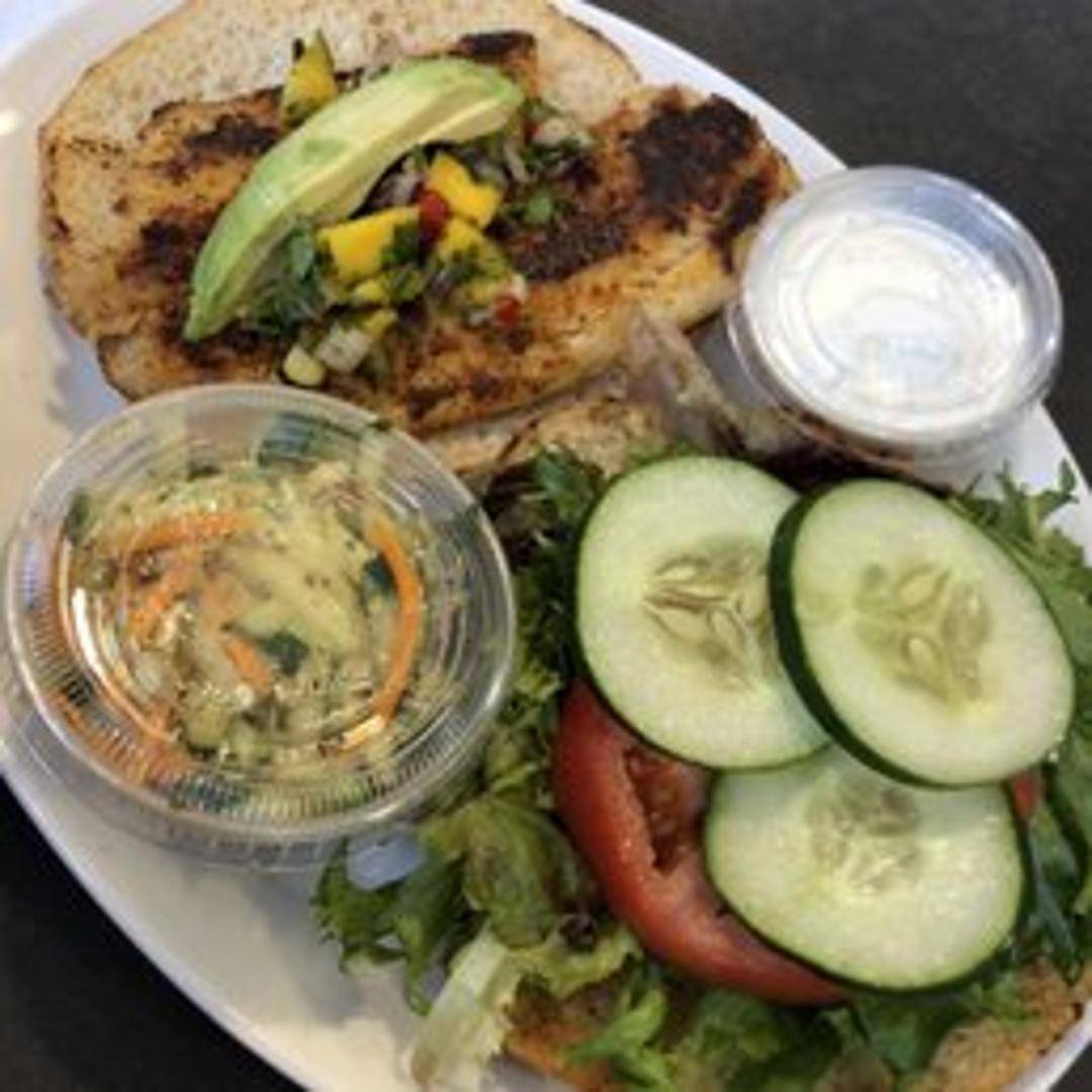 Flaky white fish, seasoned with a blend of blackened spices, grilled to perfection and served on a toasted bun. Comes with crisp lettuce, ripe tomato, and a tangy remoulade sauce. Served with your choice of side.