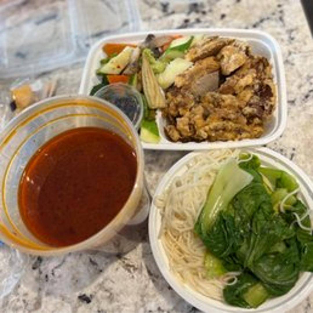 A hearty and warming bowl of rich, flavorful broth brimming with tender slices of beef, springy noodles, and a fiery blend of chili and aromatic spices, often garnished with fresh greens, offering a deeply satisfying and invigorating meal.