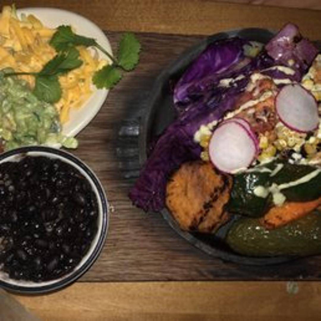 Savor the vibrant flavors of sizzling Veggie Fajitas, featuring a generous medley of expertly seasoned, sautéed vegetables such as bell peppers, onions, zucchini, and mushrooms. Served piping hot on a cast-iron skillet, accompanied by warm tortillas, fresh guacamole, sour cream, shredded cheese, and house-made salsa for a customizable and delightful Tex-Mex experience.