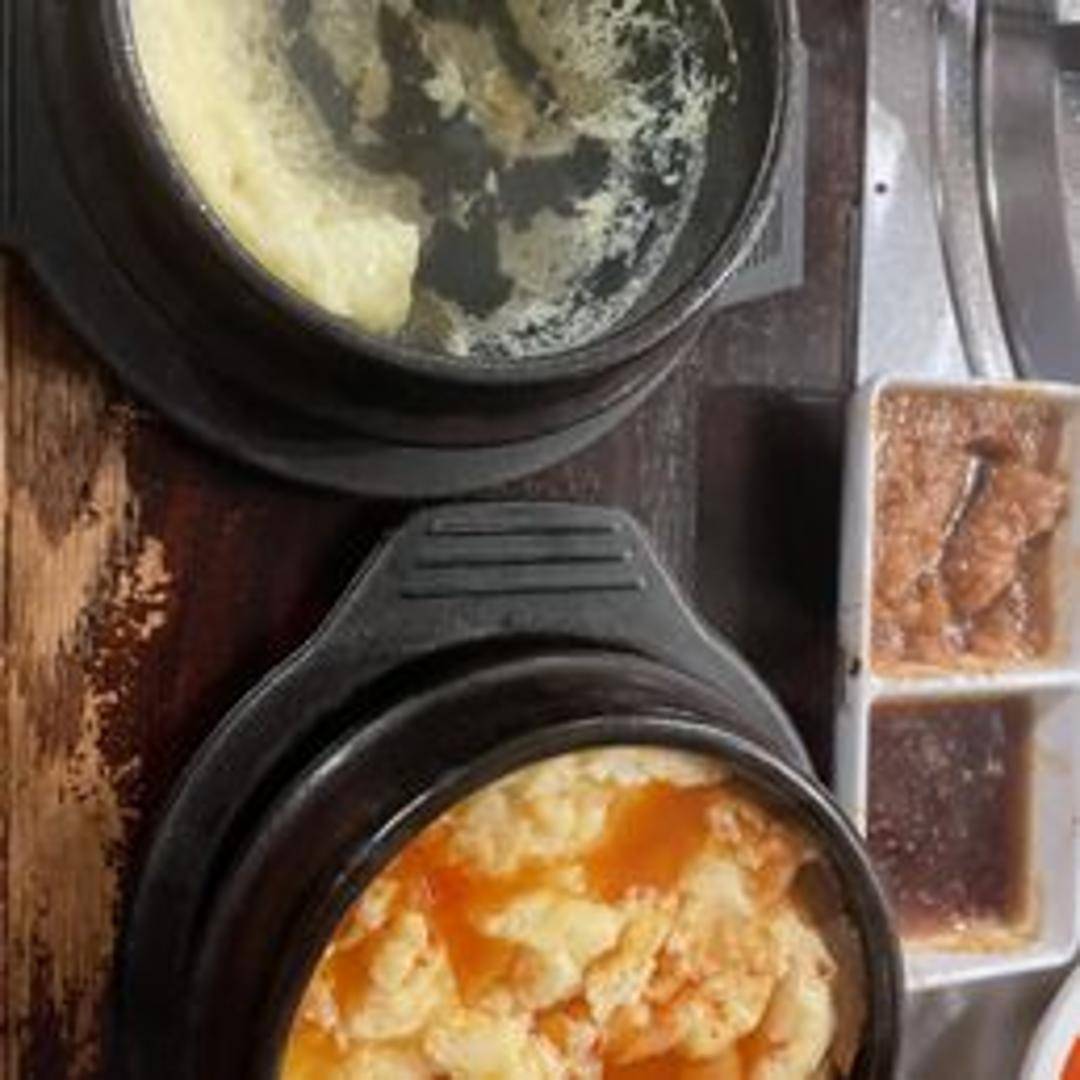 A light and fluffy steamed egg dish. Prepared in a earthenware bowl and seasoned lightly. It's a delicate and savory side dish.
