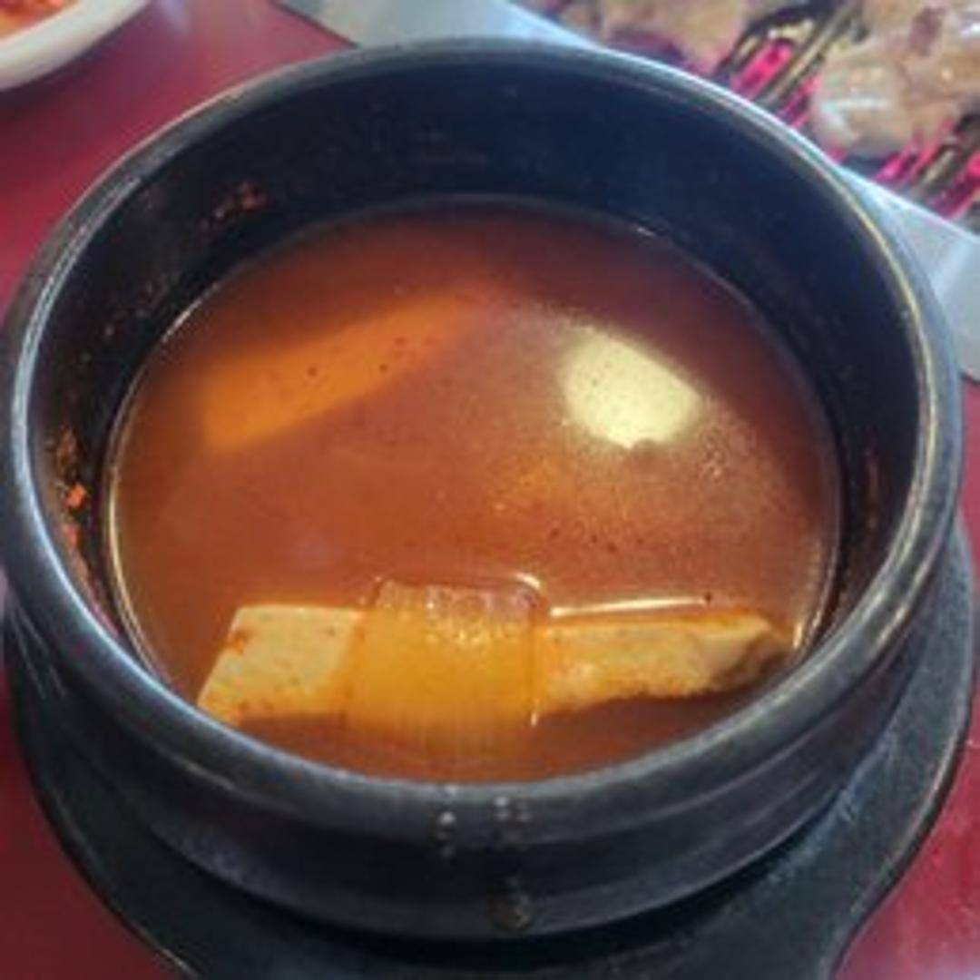 A comforting and flavorful stew featuring soft tofu in a spicy broth. Typically includes vegetables, and sometimes seafood or meat. Served bubbling hot, it's a Korean comfort food staple.