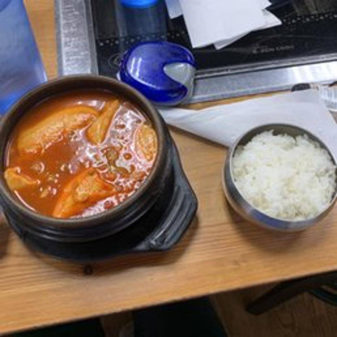 Spicy stew with soft tofu, vegetables, and your choice of protein in a flavorful broth.