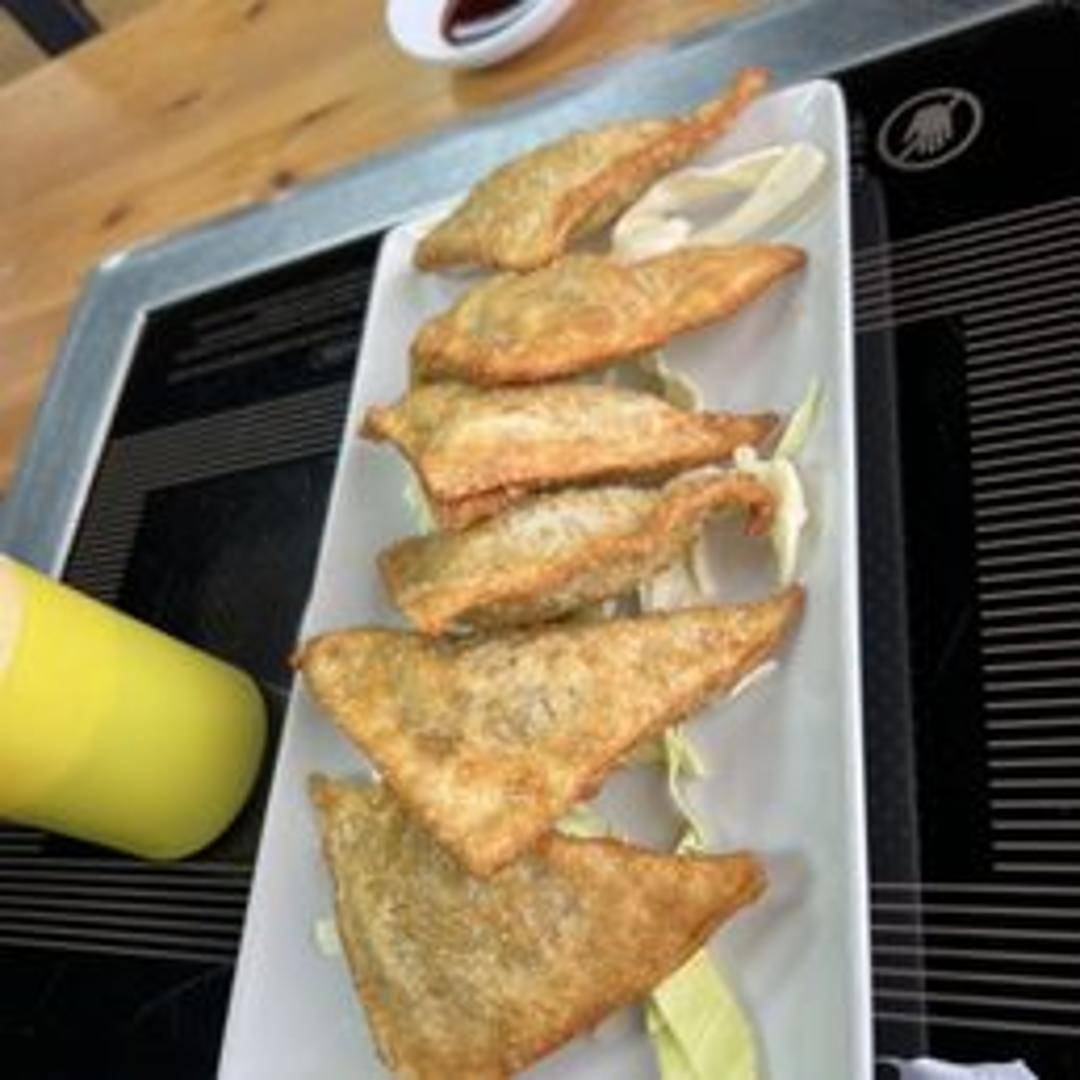 Korean dumplings filled with a mixture of ground meat, vegetables, and seasonings, served steamed or fried.