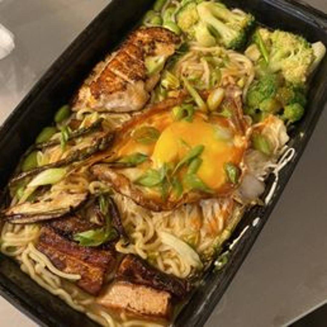 A flavorful and comforting ramen featuring a rich seafood broth, tender noodles, and a medley of fresh seafood like shrimp, scallops, and mussels. Garnished with seaweed, scallions, and a soft-boiled egg.