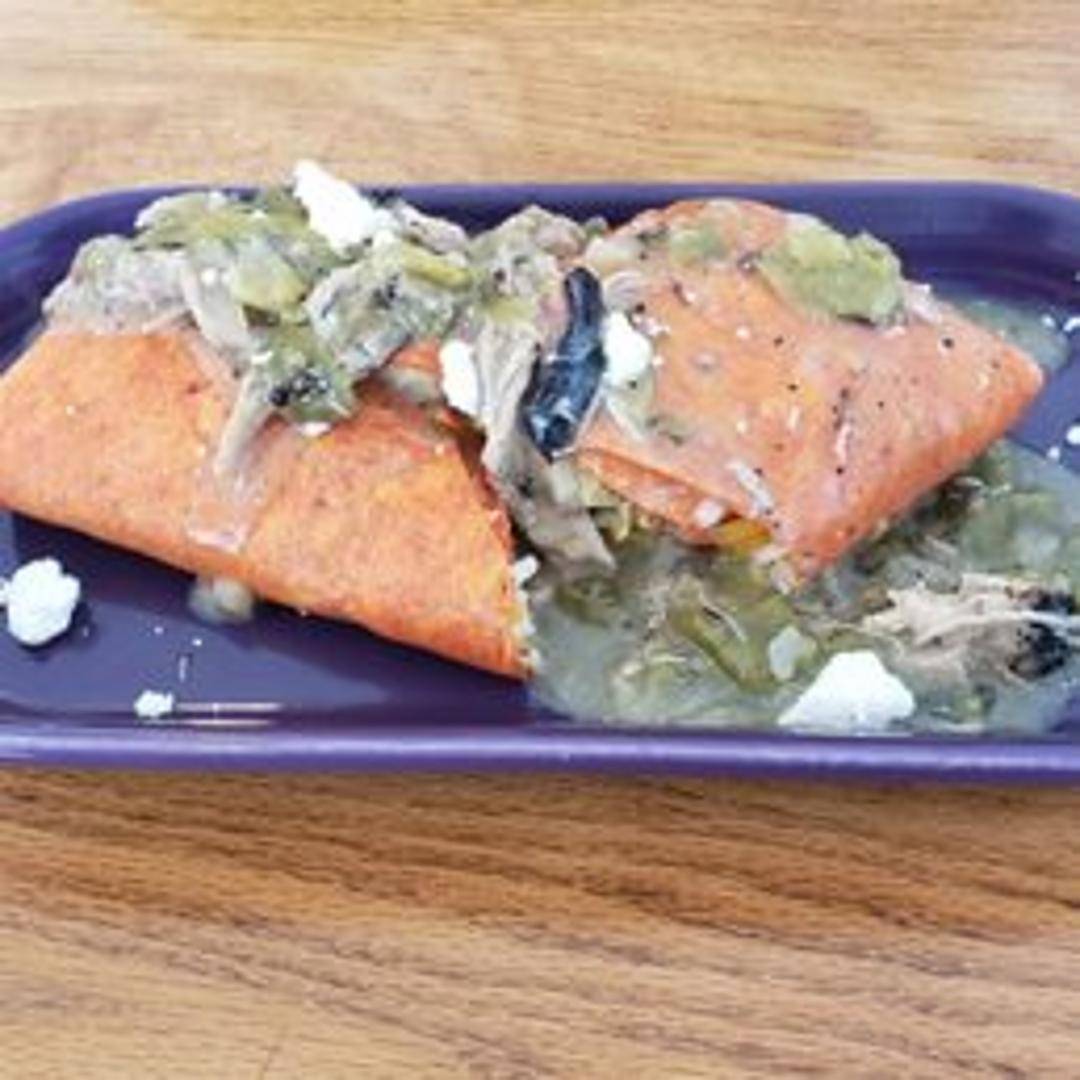 A hearty and satisfying Mexican-inspired sandwich featuring grilled marinated steak, melted Oaxaca cheese, avocado slices, pickled onions, chipotle mayo, and fresh cilantro on a toasted telera roll. Served with a side of homemade tortilla chips and salsa.