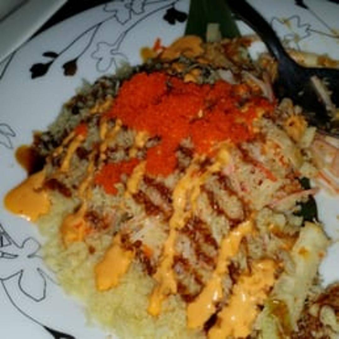 A mix of crab meat, spicy mayonnaise, and other ingredients. Served as a side or topping.