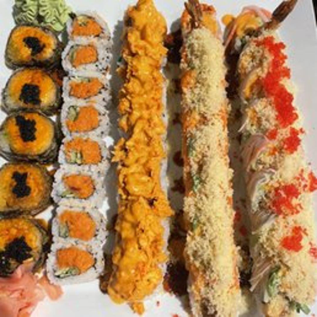 Crab, avocado, cucumber inside, topped with spicy tuna, tempura flakes, eel sauce and spicy mayo.