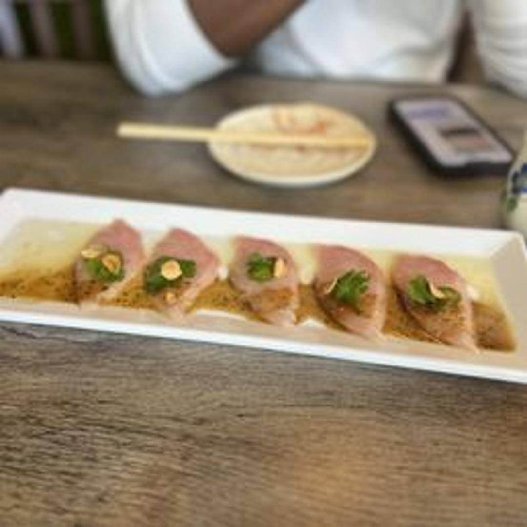 Thinly sliced yellowtail served with a light and flavorful sauce, often including citrus and ponzu.